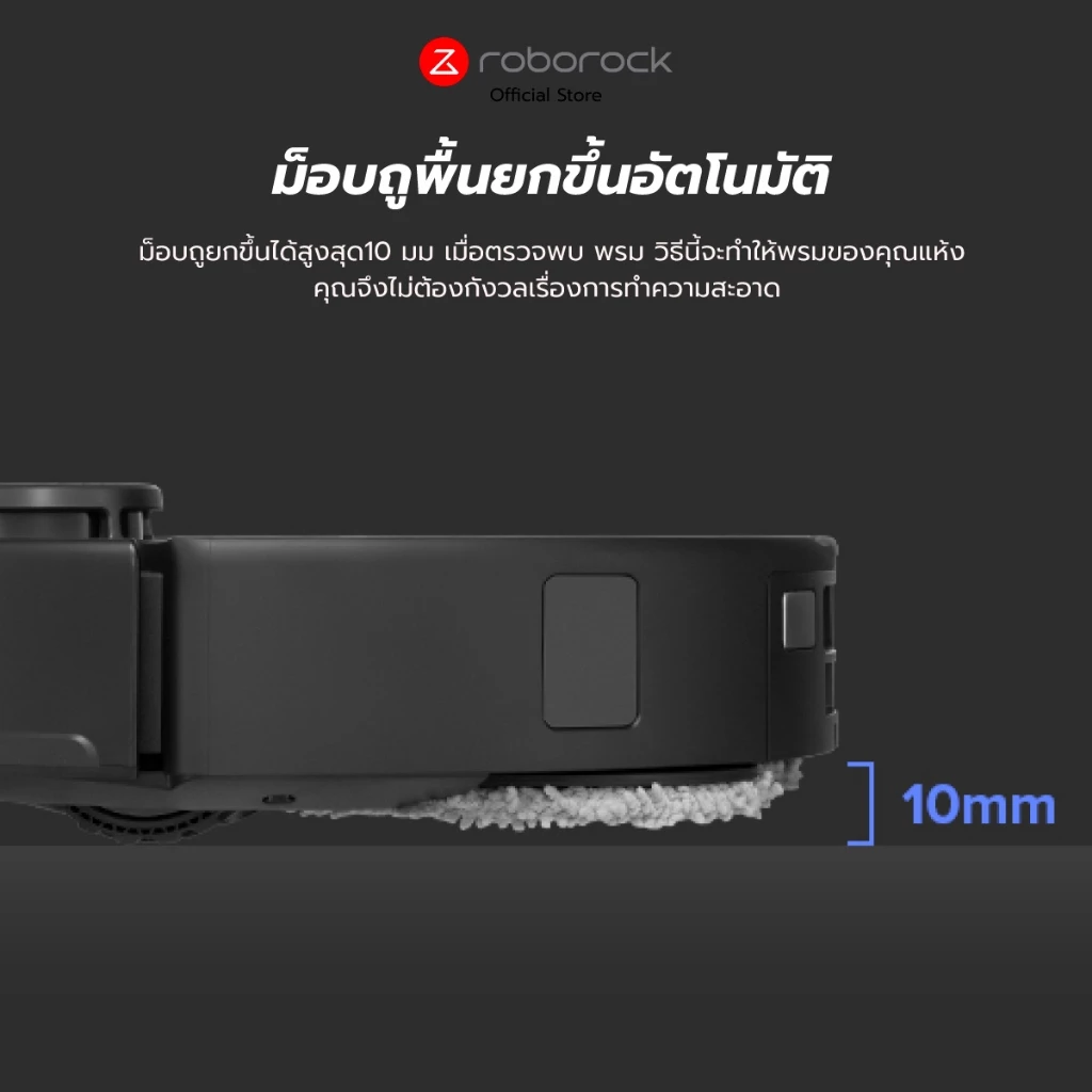 ความหนาของม็อบเมื่อถูพื้น/ยกรถ | ม็อบสามารถยกสูงประมาณ 10 มม. เมื่อมีพื้นพรมหรือขณะกลับฐาน |